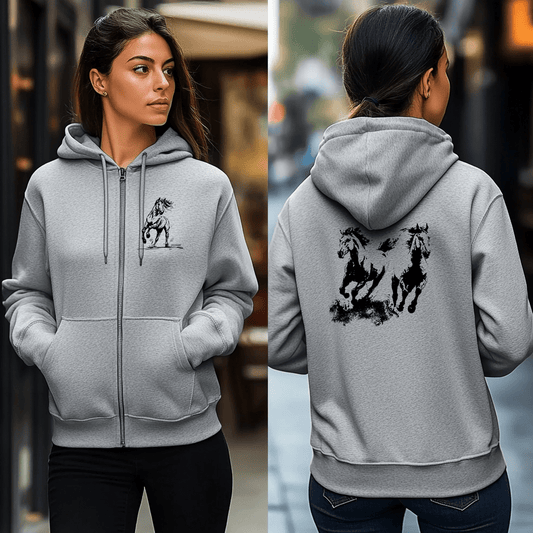 Western Mule Horse Full Zip Hoodie - Trail riding Jacket - Barn Coat