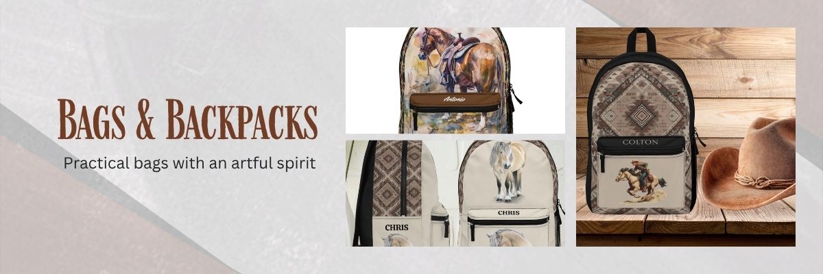 Artfully designed backpacks and bags for horse lovers.