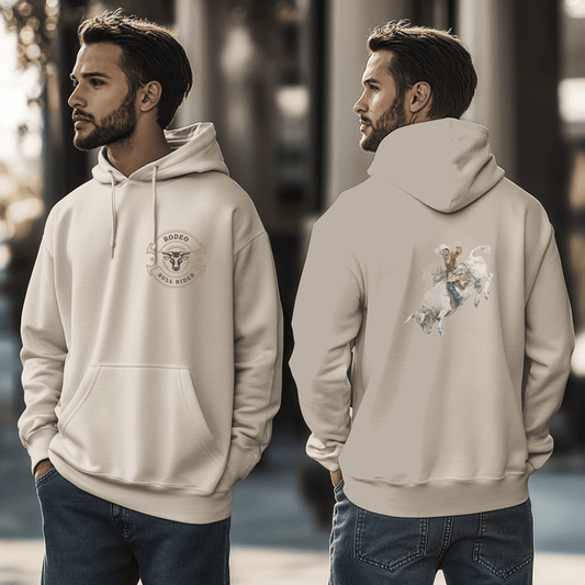 Cowboy Rodeo Hoodie – Western Bull Rider Graphic Sweatshirt in Sand, Country Style Unisex Pullover