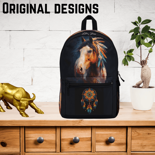 Spirit Horse Backpack, Native American Style Bookbag, Colorful Feathered Horse Bag, Horse Lover Gift