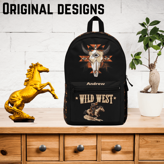 Wild West Cowboy Backpack for Boys - Personalized Aztec Bull Skull