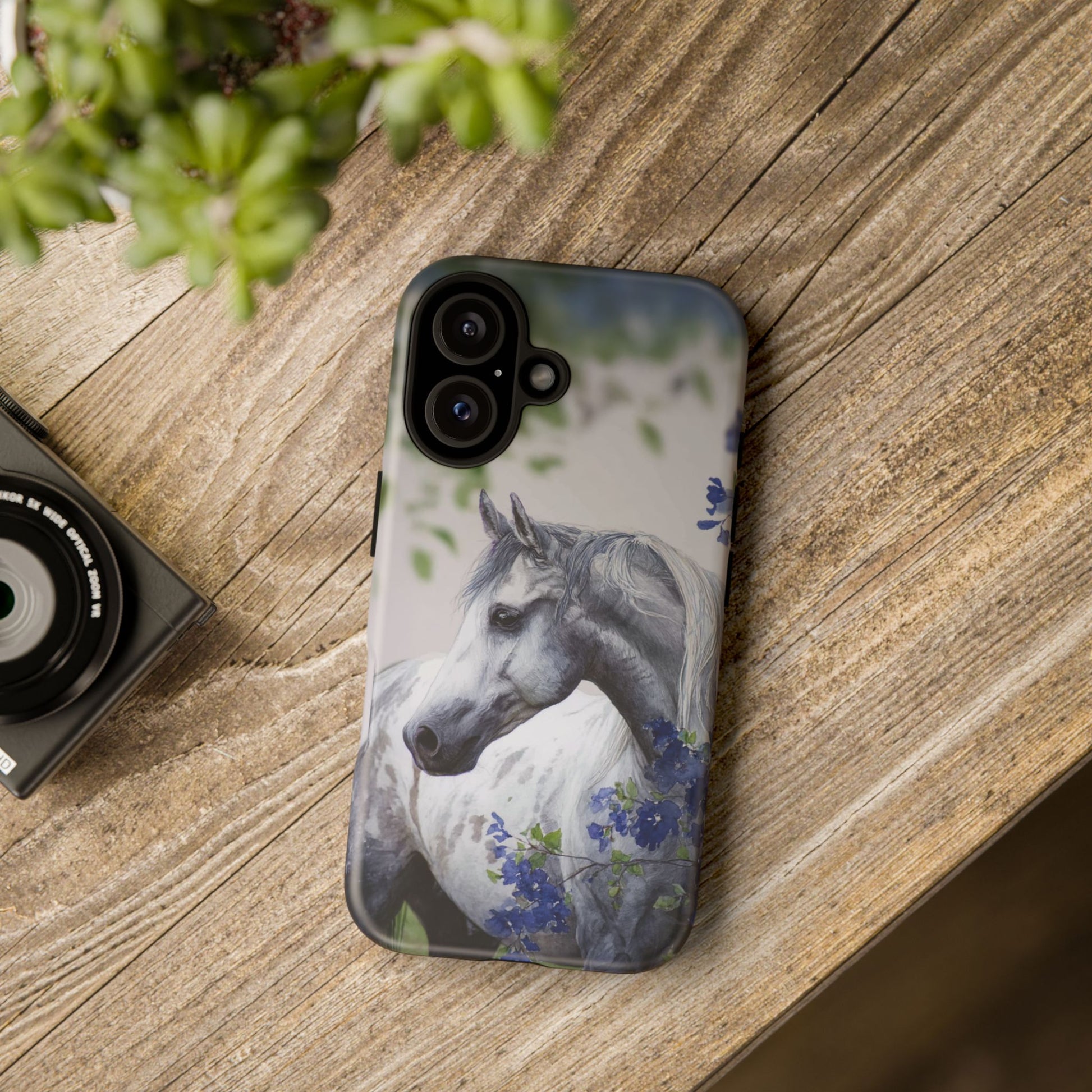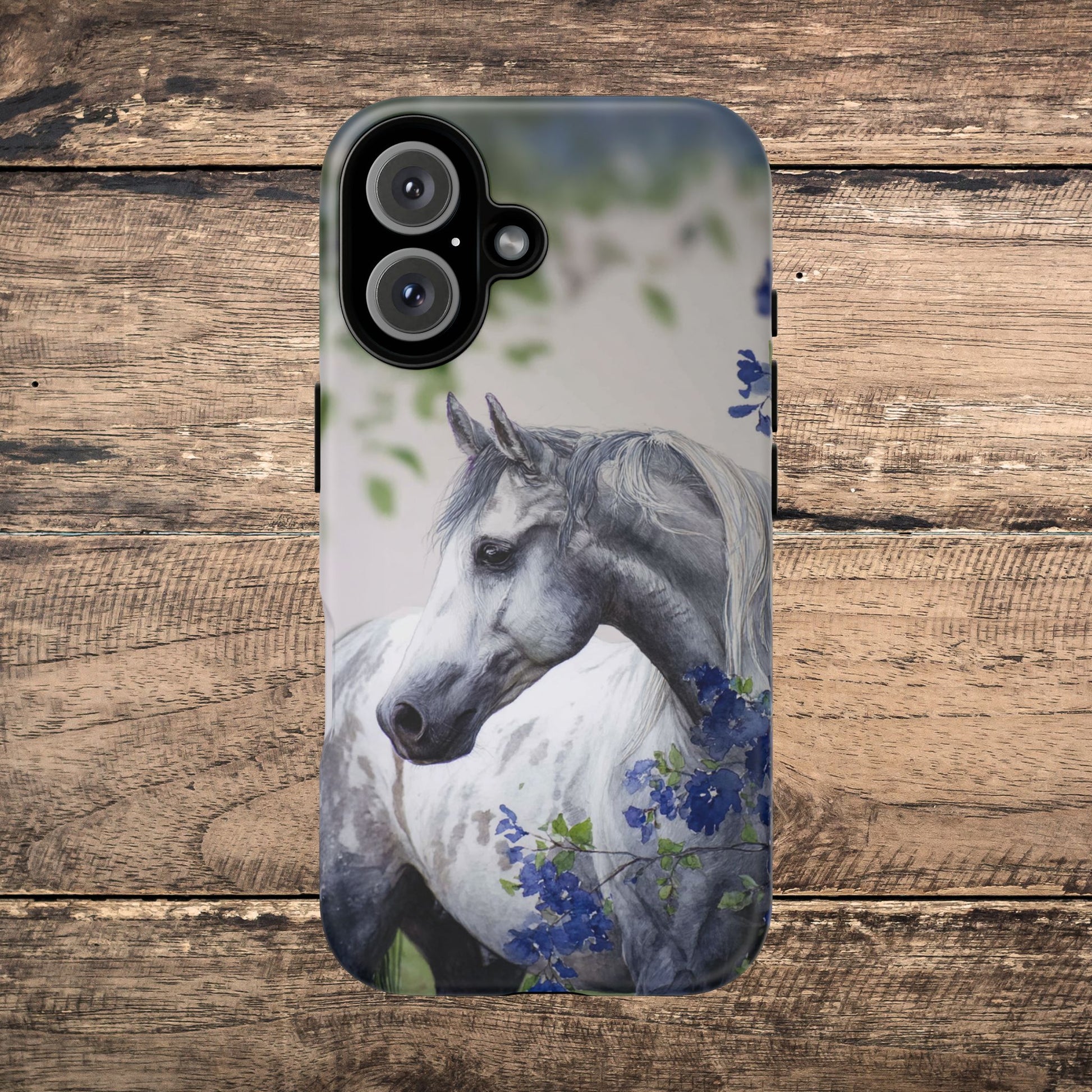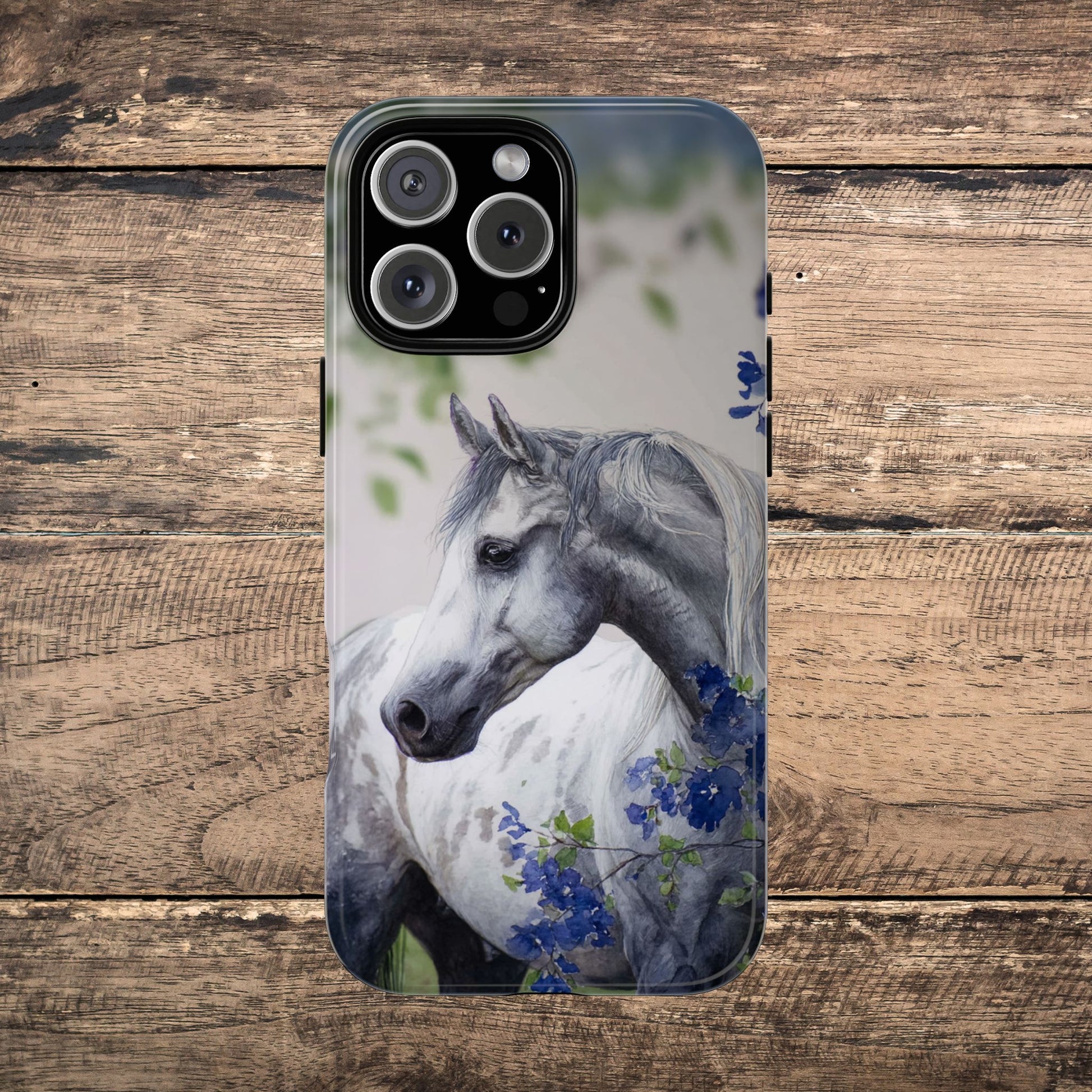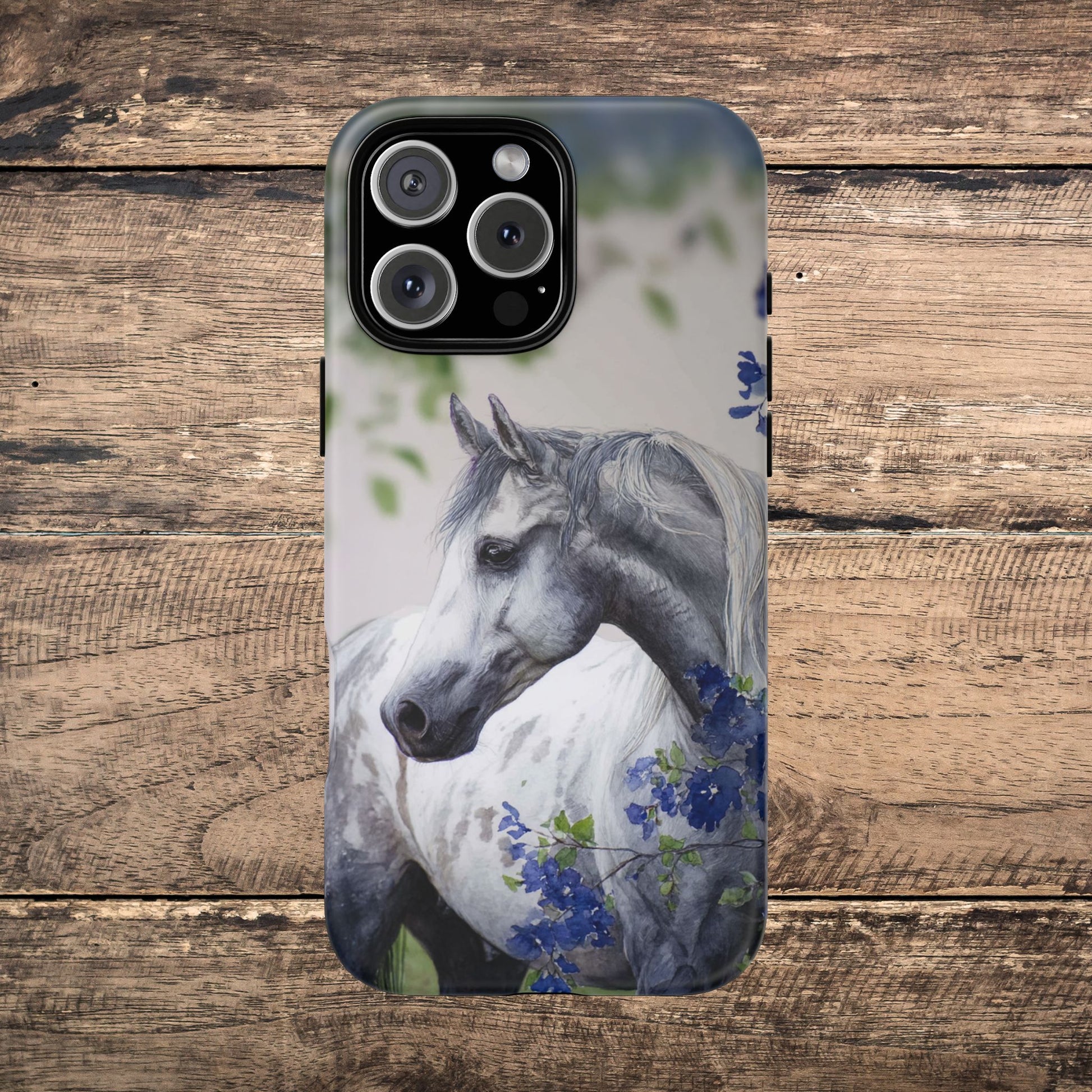 Dapple Gray Horse iPhone Case β Watercolor Horse & Flowers, Dual-Layer Protection for iPhone 14, 15 & 16