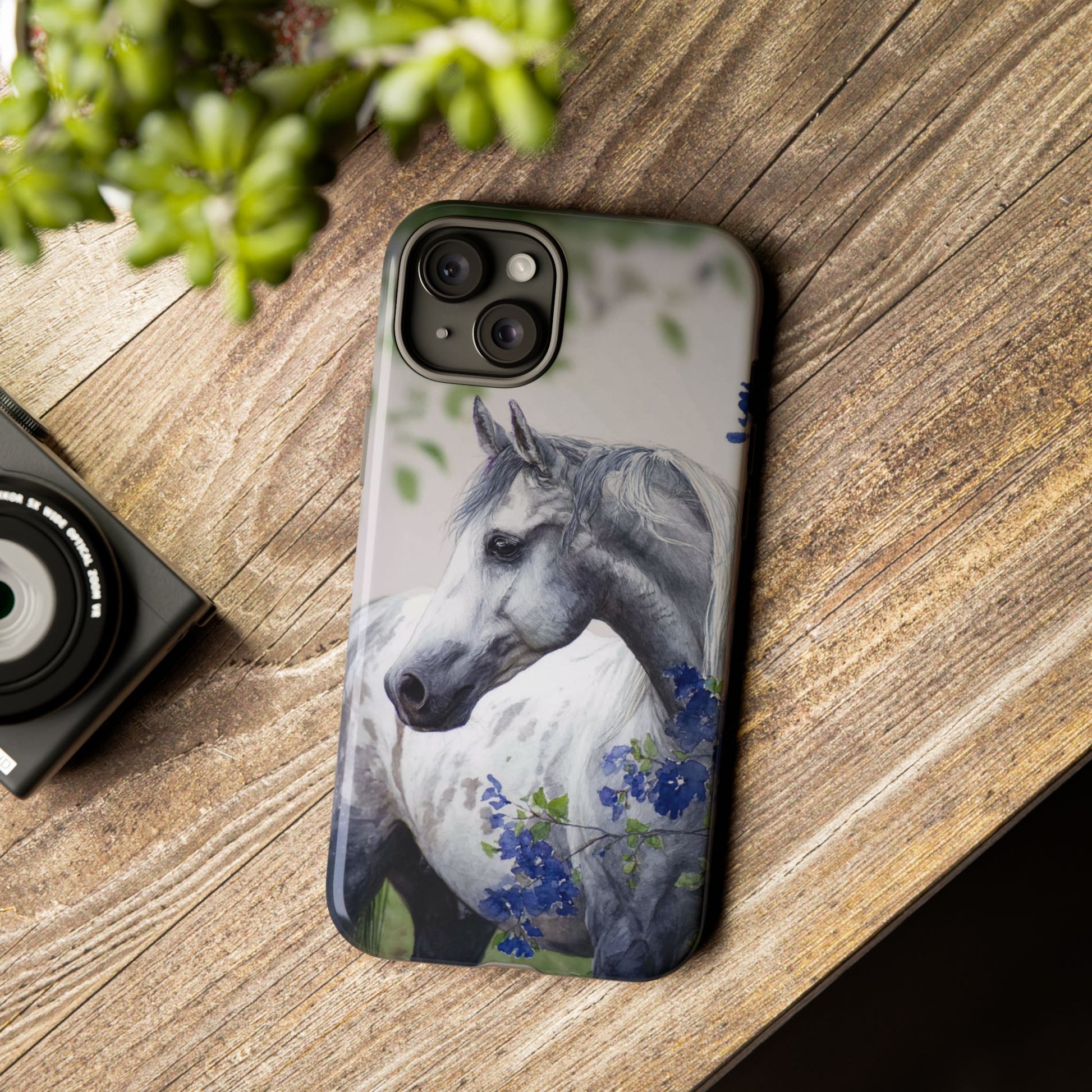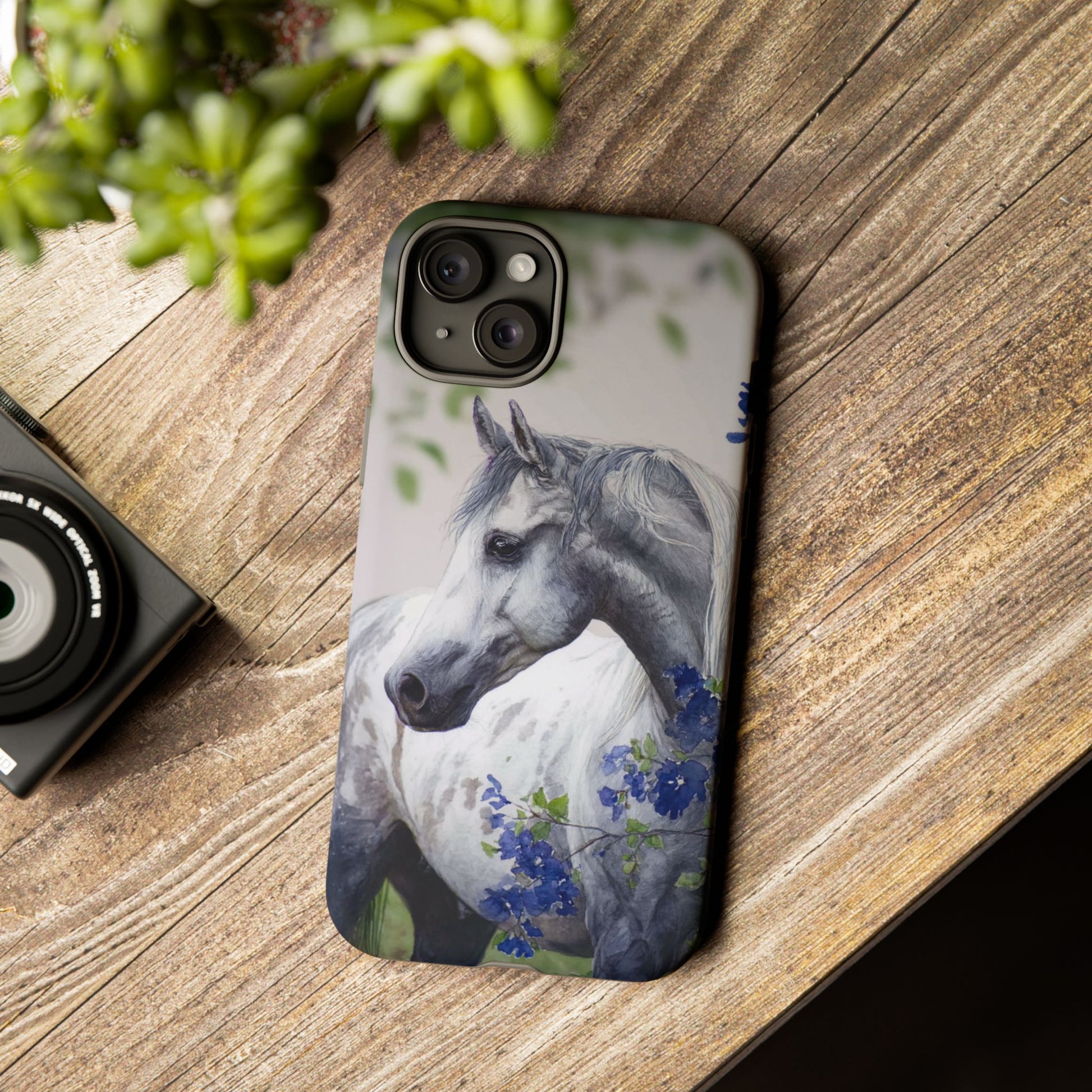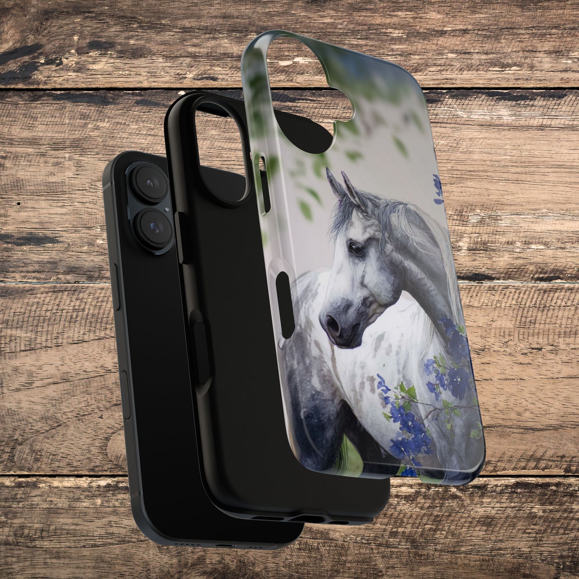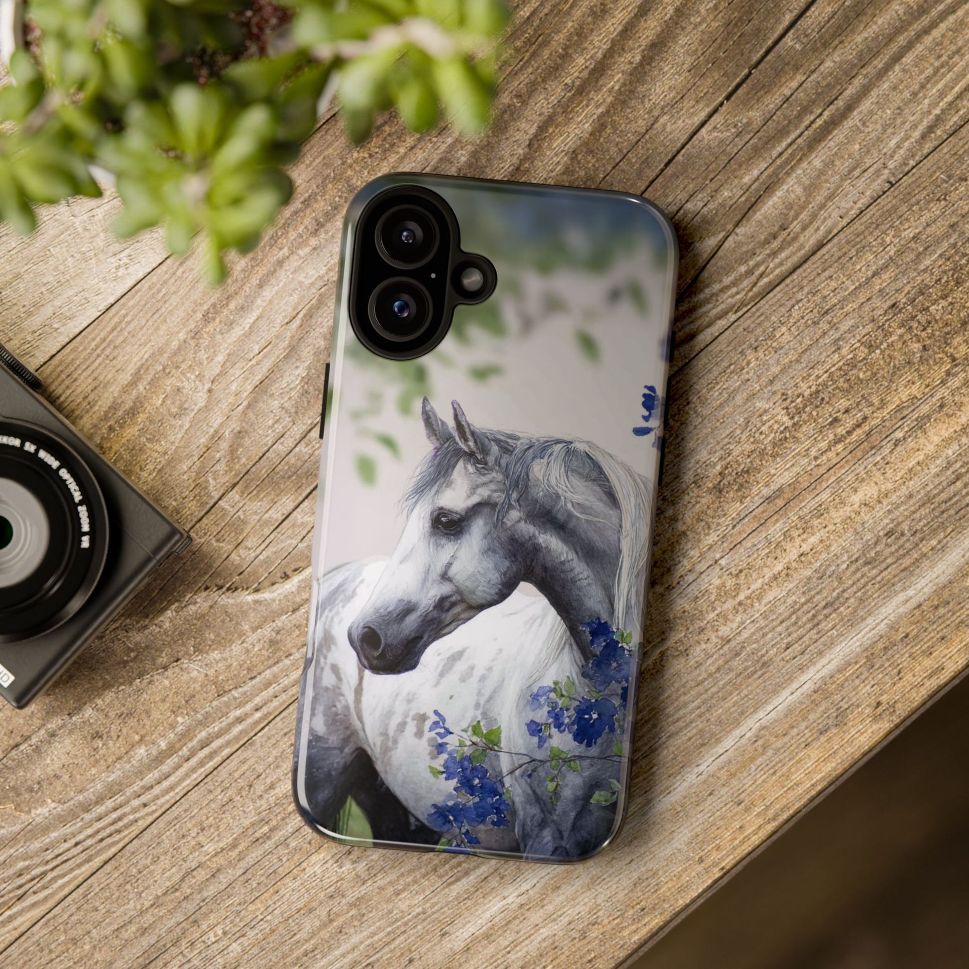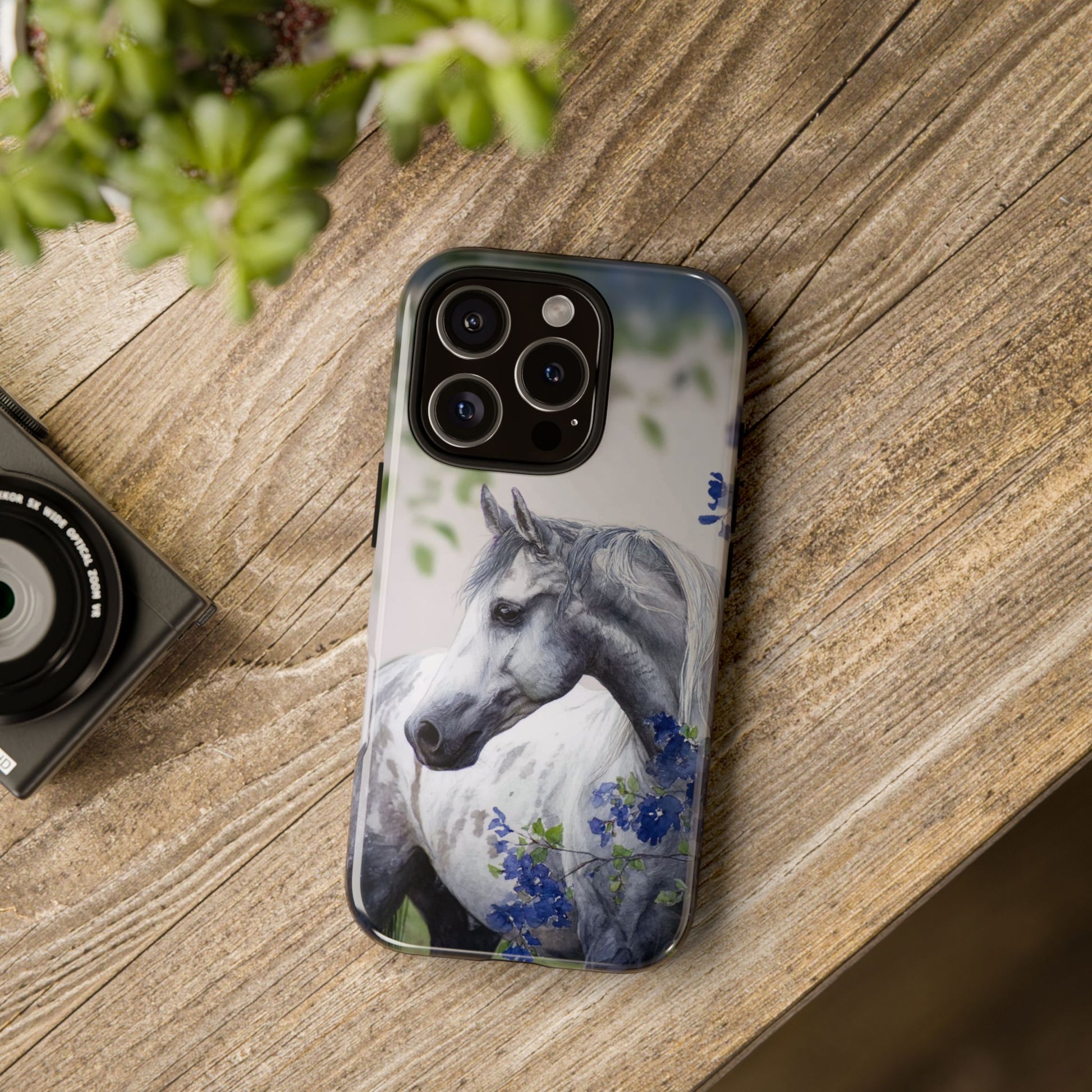 Dapple Gray Horse iPhone Case β Watercolor Horse & Flowers, Dual-Layer Protection for iPhone 14, 15 & 16