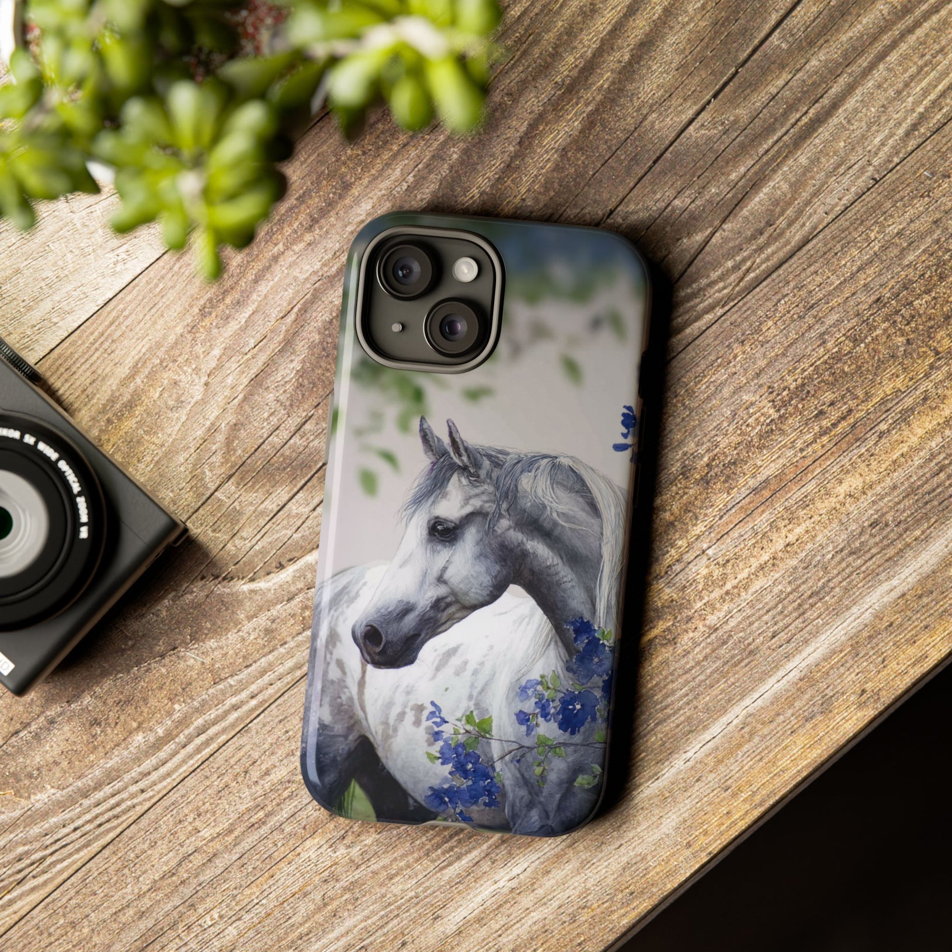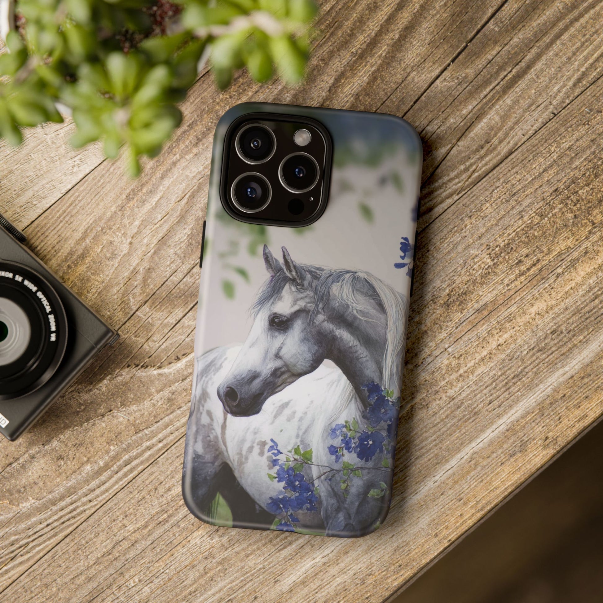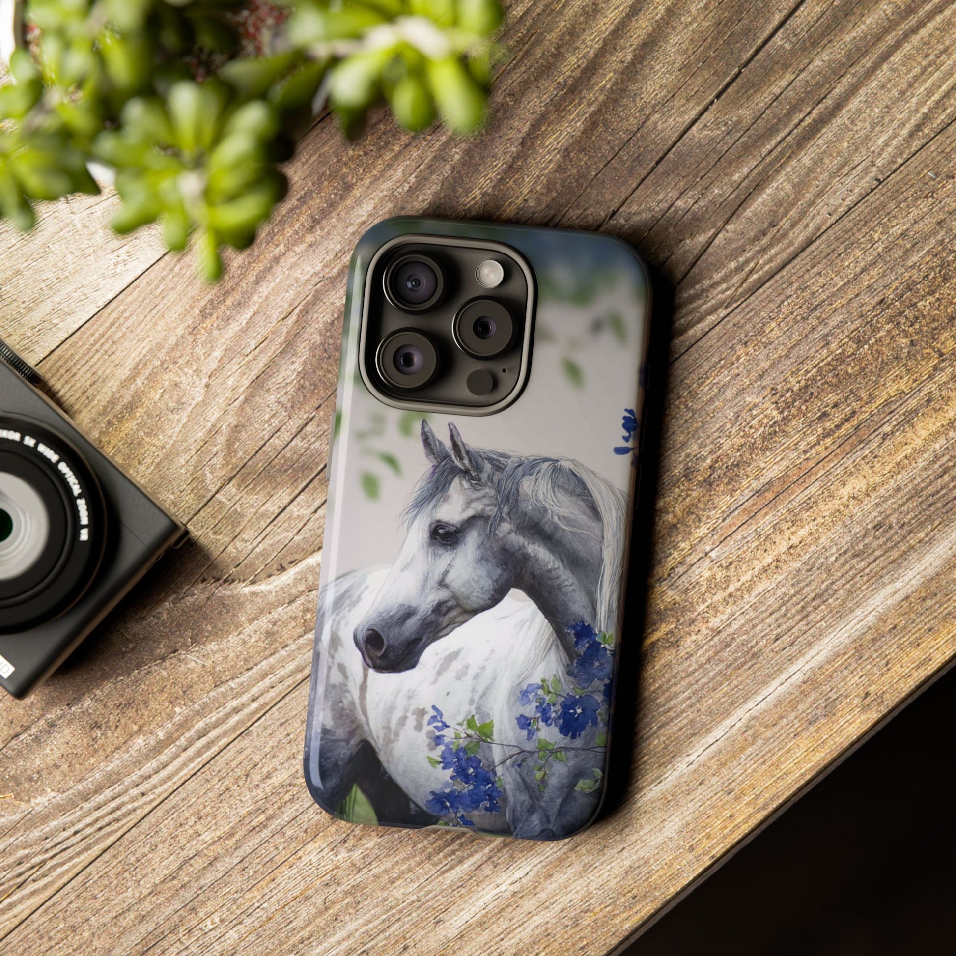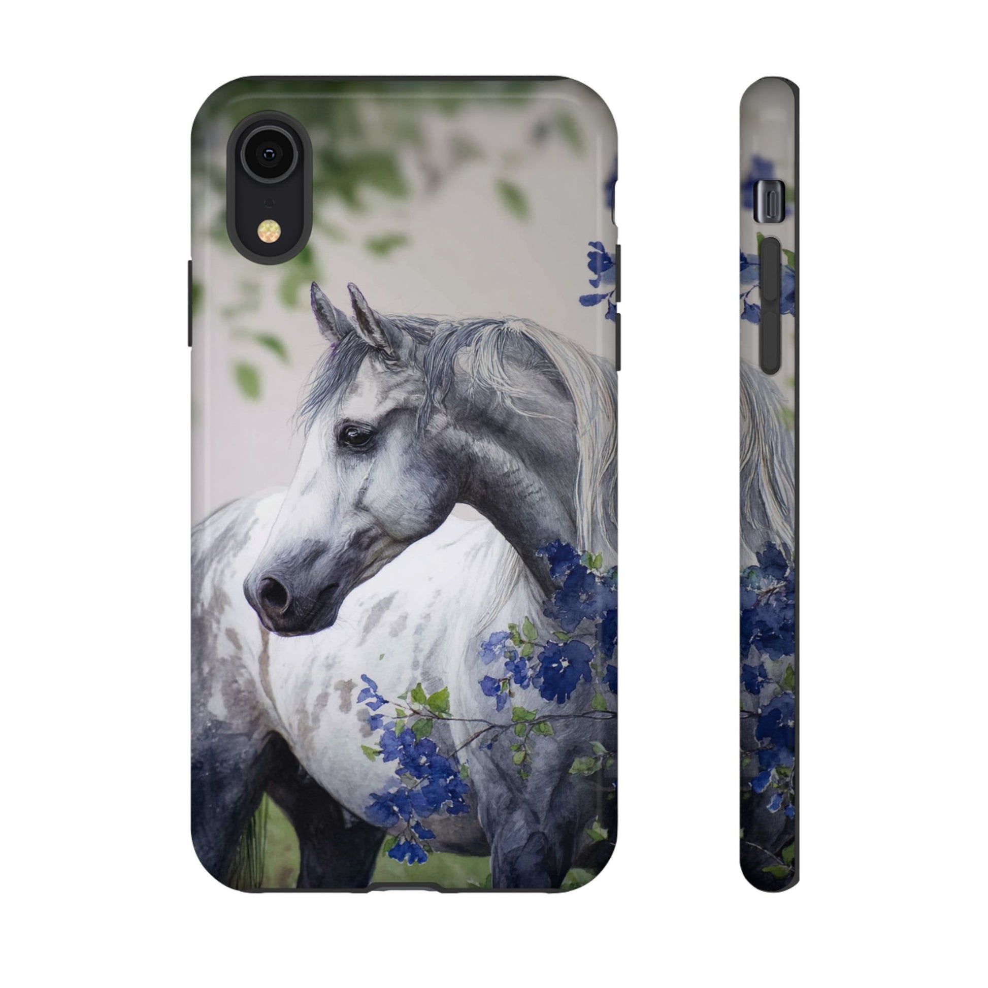 Dapple Gray Horse iPhone Case β Watercolor Horse & Flowers, Dual-Layer Protection for iPhone 14, 15 & 16