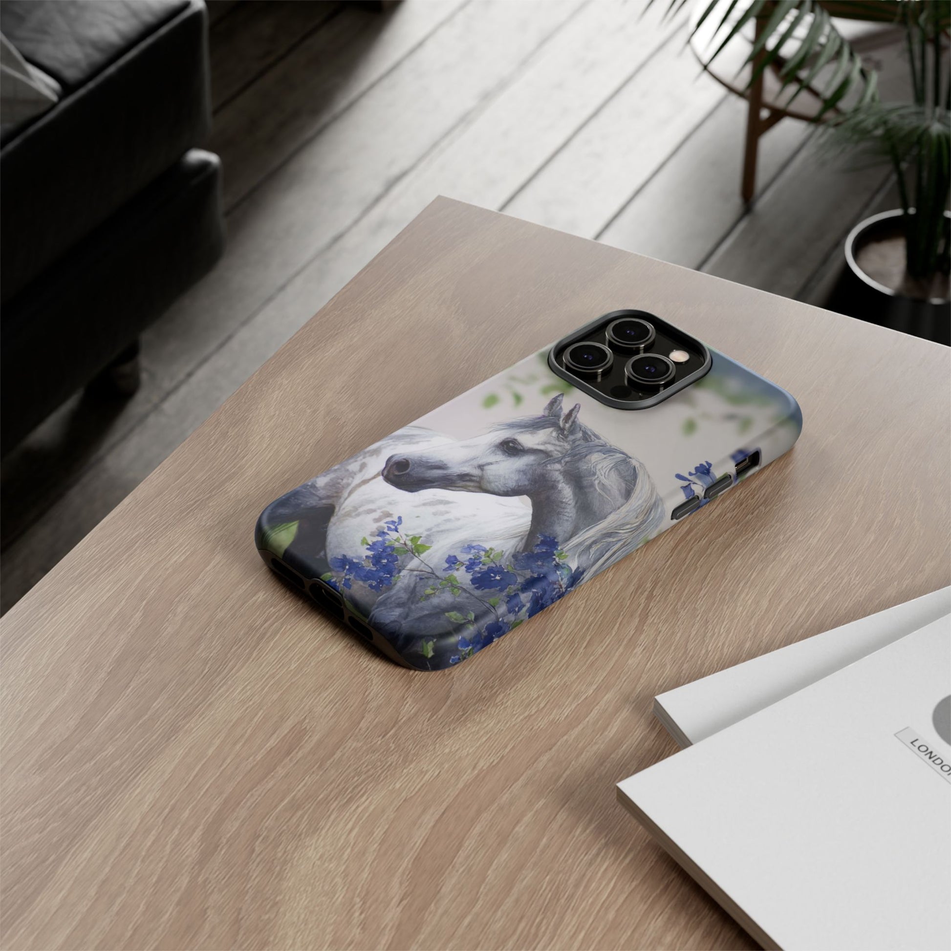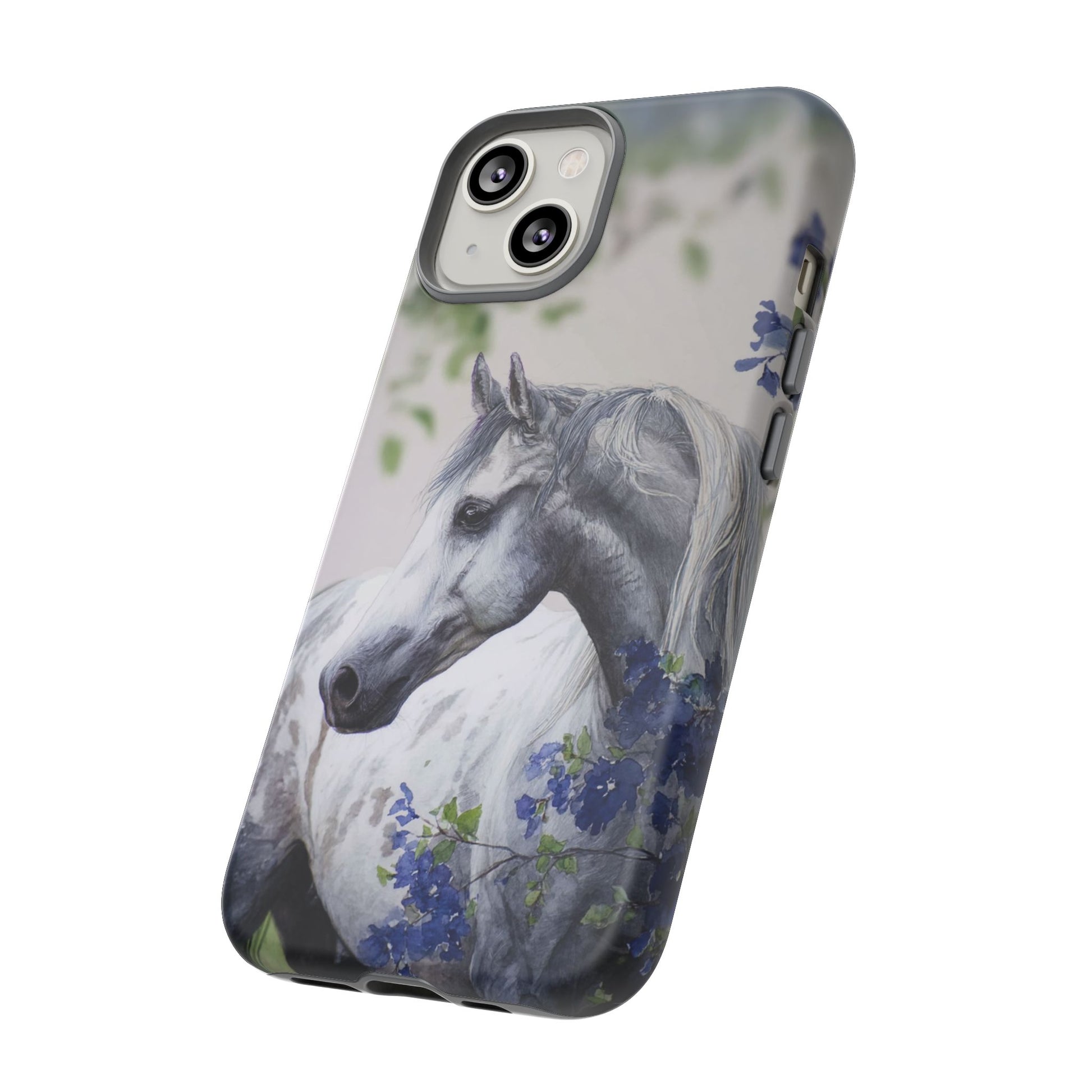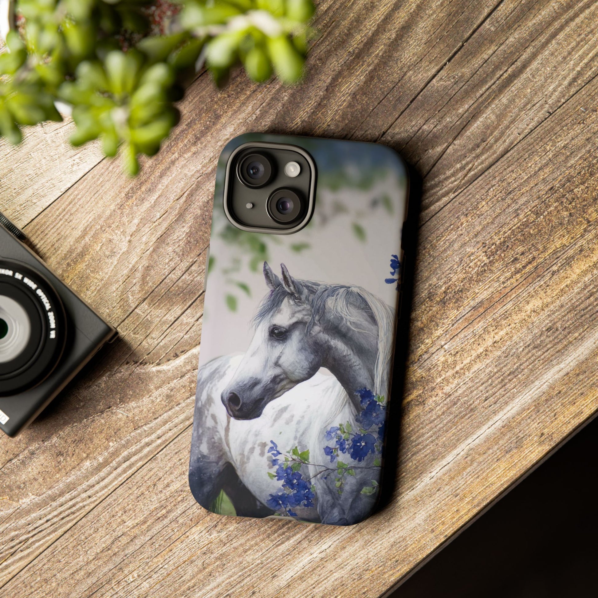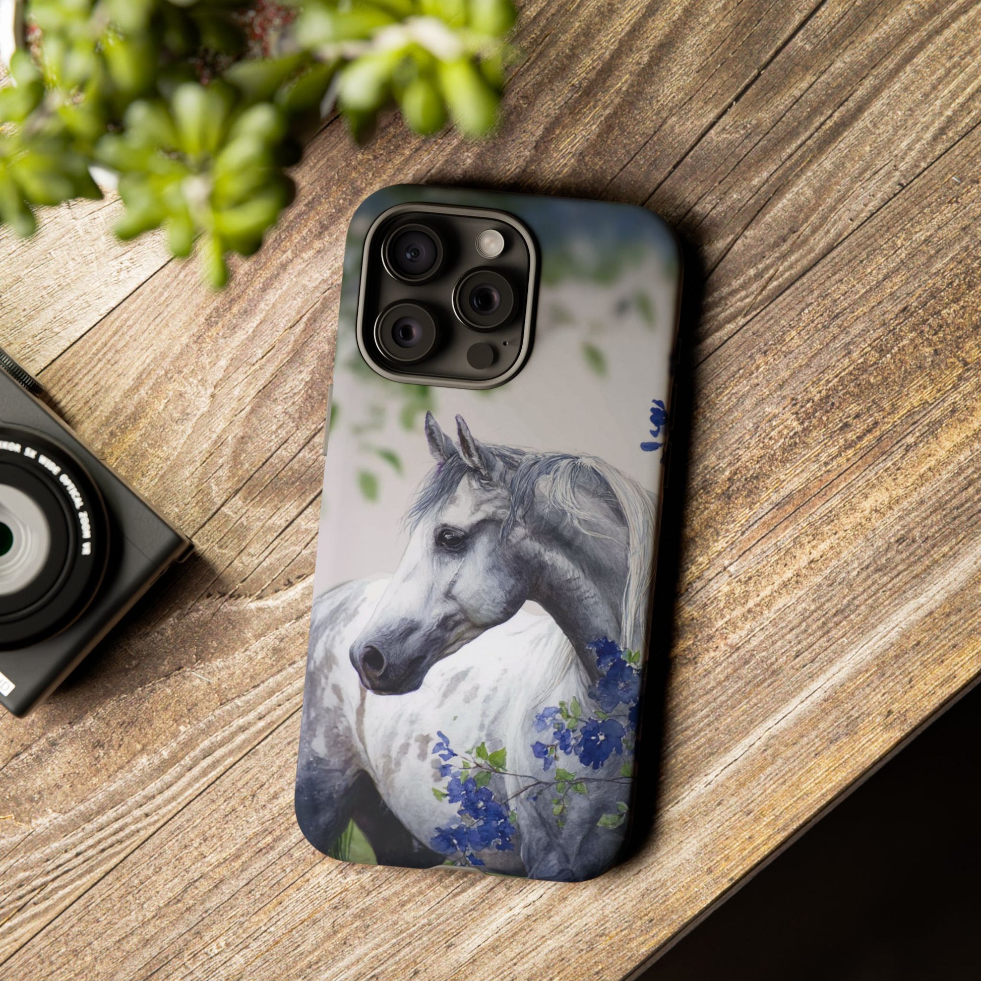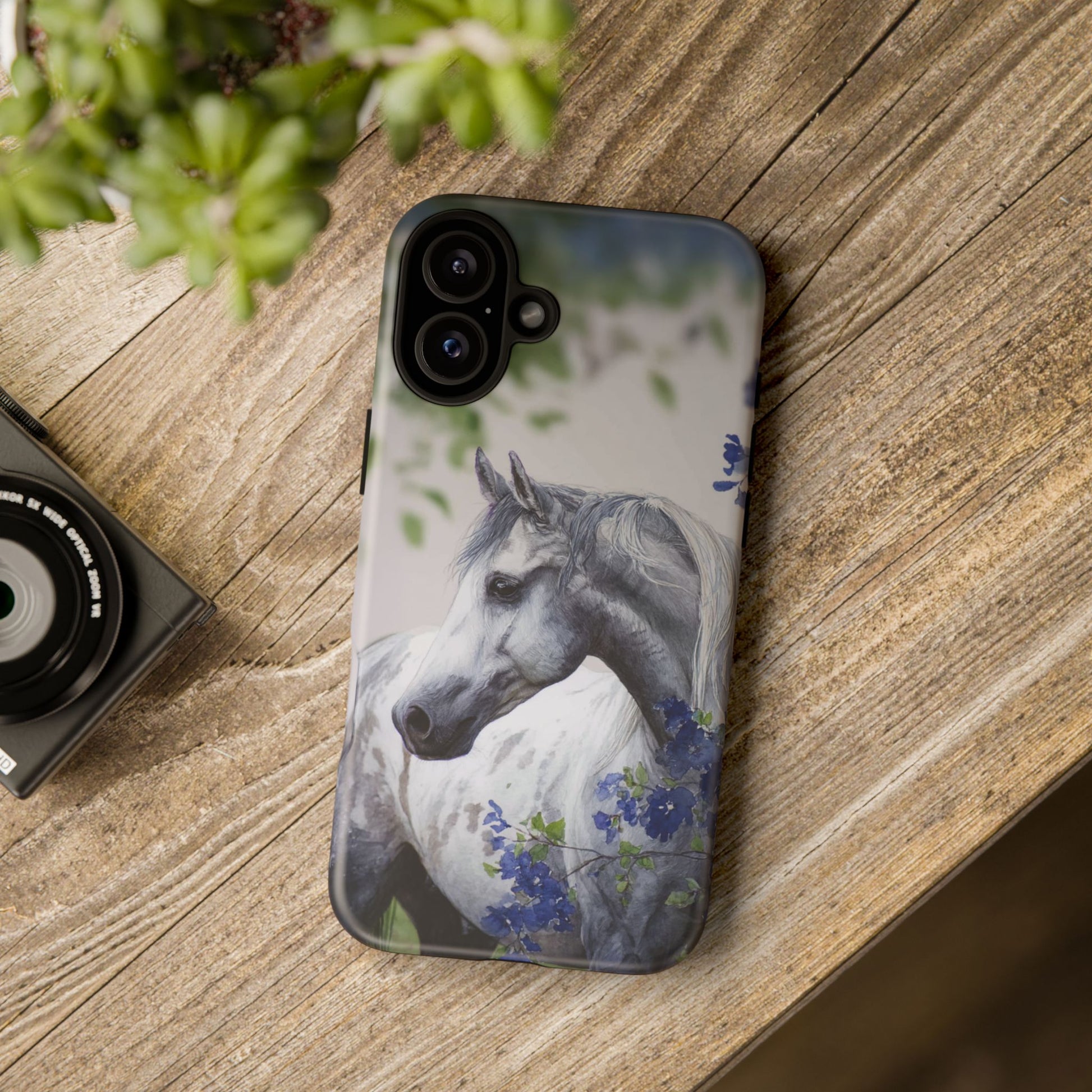Dapple Gray Horse iPhone Case β Watercolor Horse & Flowers, Dual-Layer Protection for iPhone 14, 15 & 16