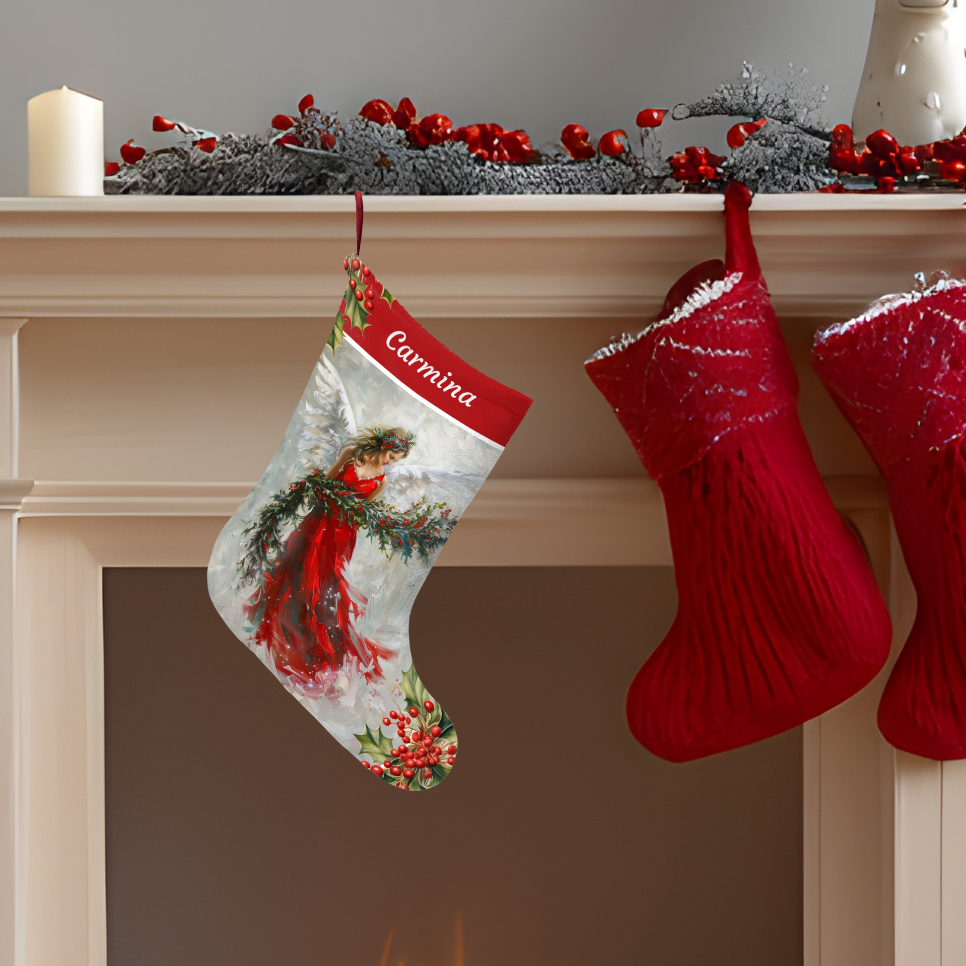 Red Angel Holiday Stocking, Decorative Art Christmas Stockings