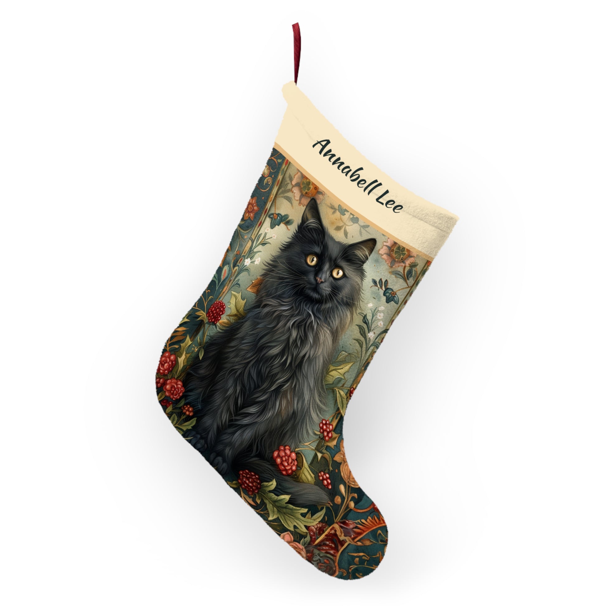 Victorian Black Cat Christmas Stocking - A Black Cat